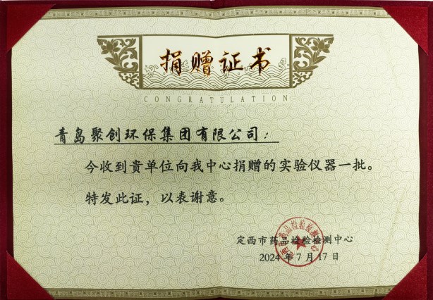 近日,聚創(chuàng)集團(tuán)參與青島市幫扶定西市食藥產(chǎn)業(yè)檢驗檢測能力提升暨青島?定西大型檢驗檢測儀器設(shè)備捐贈活動,并收到定西市藥品檢驗檢測中心表達(dá)感謝的捐贈證書。